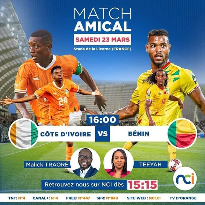 Dans le cadre des journées FIFA de mars 2024, les Guépards du Bénin affrontent les Éléphants de la Côte d’Ivoire (champions d’Afrique) ce samedi 23 mars 2024 à 17h locales au stade La Licorne d’Amiens en France. A la mi-temps, le score est de 1 but partout.