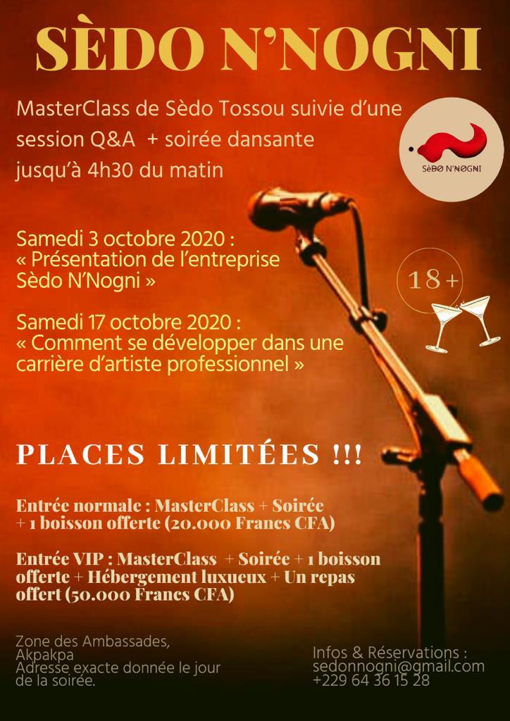 De retour à Cotonou début septembre 2020, il a déjà officialisé sa première entreprise, pour lancer ses projets. Son nom, « Sèdo N’nogni » qui signifie « Je me nomme Sèdo ». Déjà, deux activités intéressantes au profit des professionnels du cinéma, prévues pour les samedi 03 et samedi 17 octobre prochains, sont au rendez-vous.