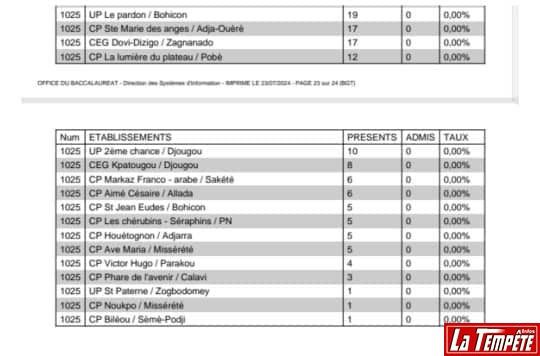 Au Bénin, après la délibération et la proclamation des résultats, l’Office du Baccalauréat a rendu publiques les statistiques détaillées des 10.141 établissements scolaires ayant participé à l’examen sur le plan national. Selon les chiffres, 17 ont affiché un taux de réussite alarmant de 0%.