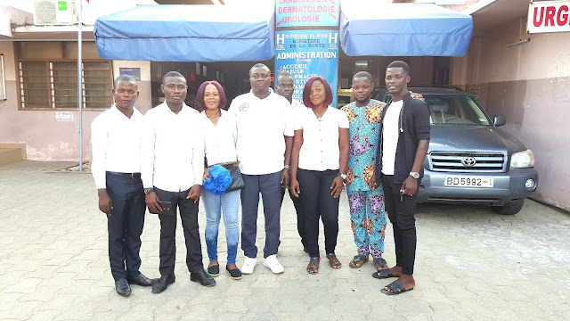 | Le fondateur et coordonnateur de l’association « VISION ALLODO » entouré de ses collaborateurs à la fin de la cérémonie |