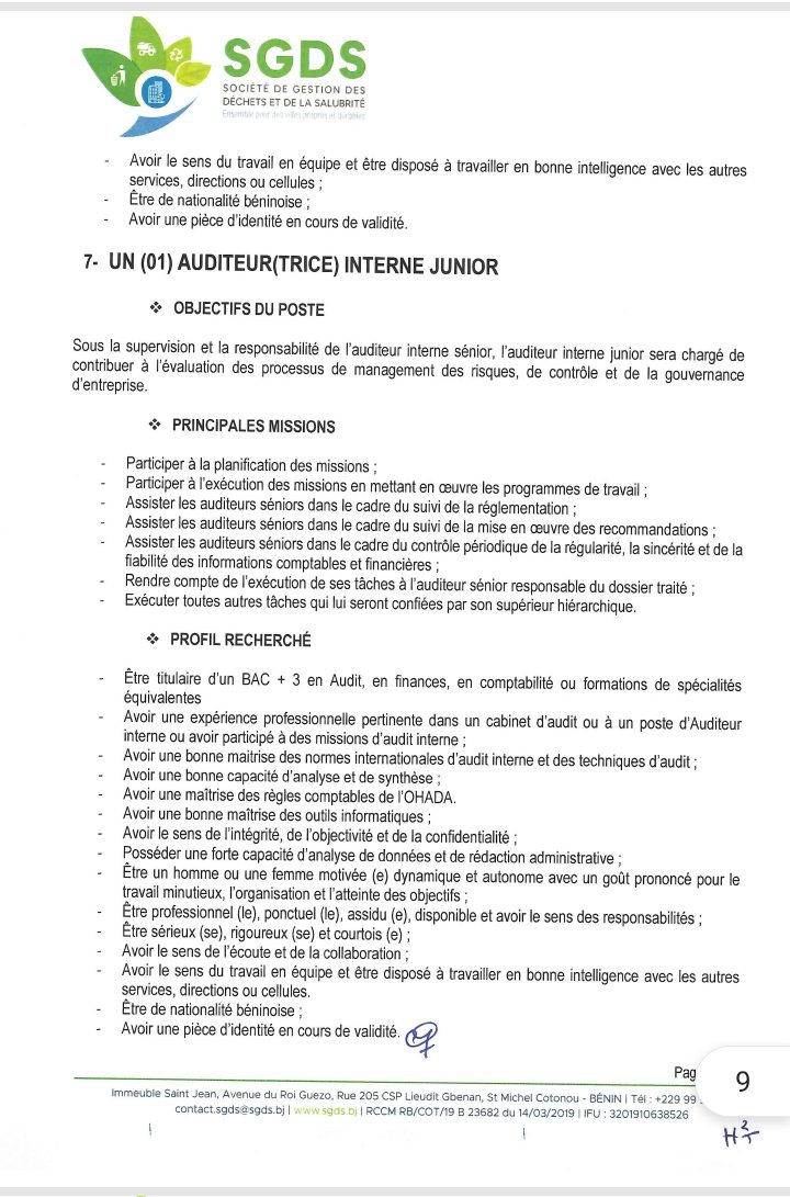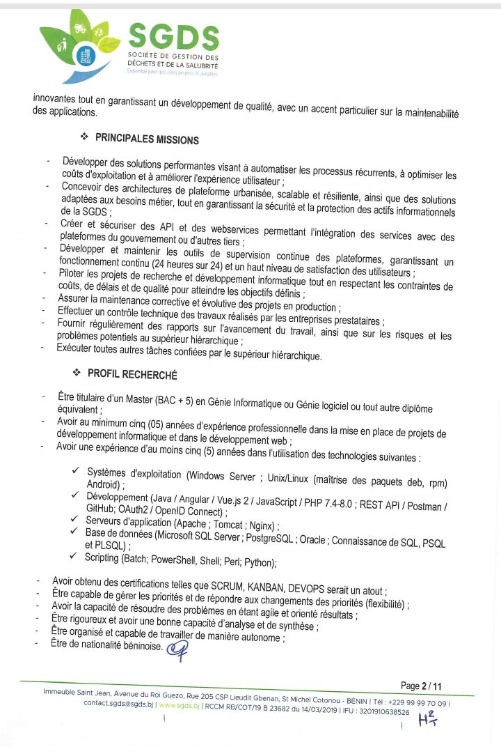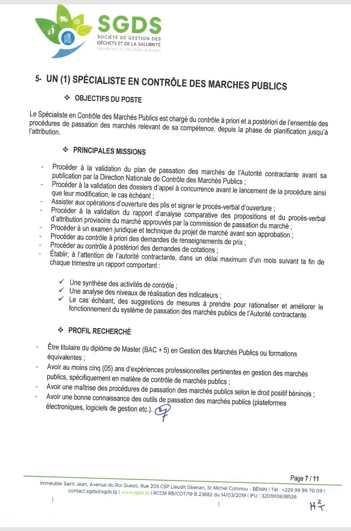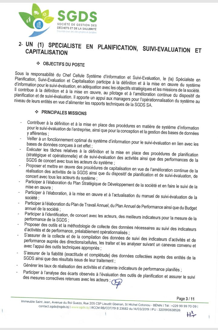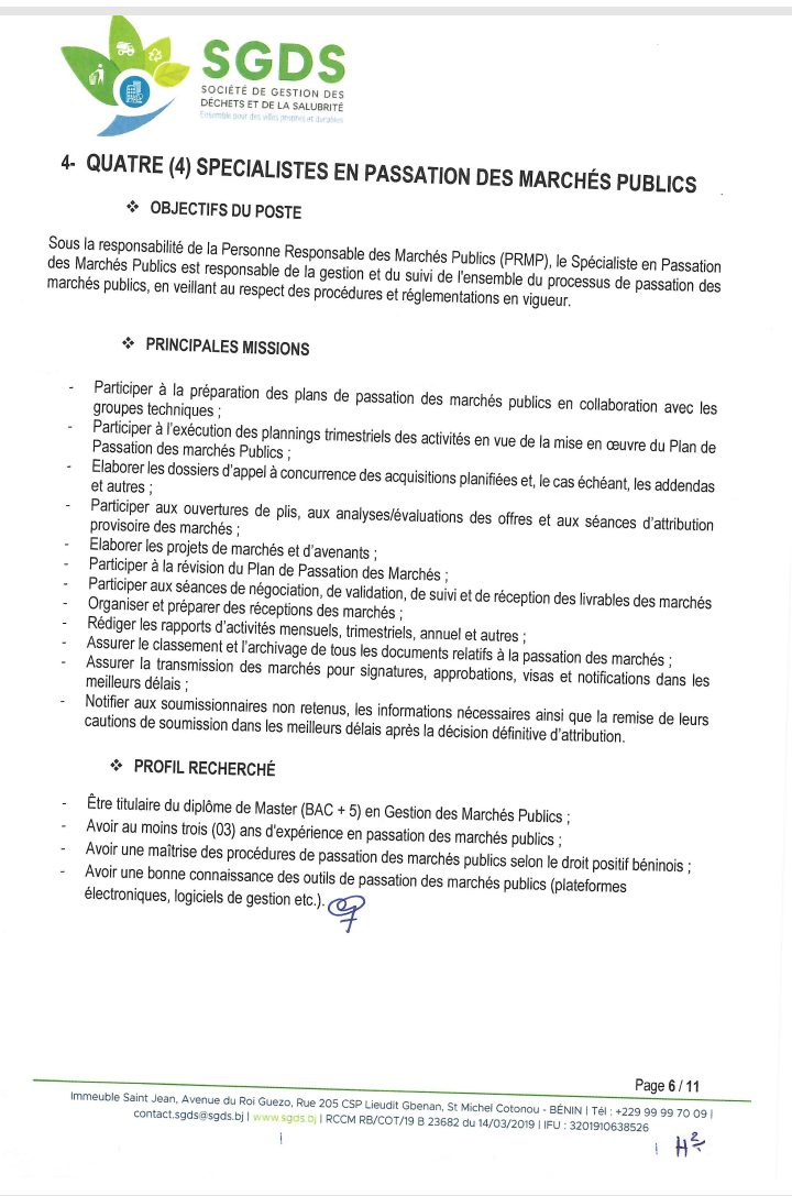 Après un premier recrutement de l’année 2024 en février, la Société de Gestion des Déchets et de la Salubrité (SGDS Sa) lance un nouveau recrutement de plusieurs agents. Lire l’intégralité de l’avis pour les informations utiles.