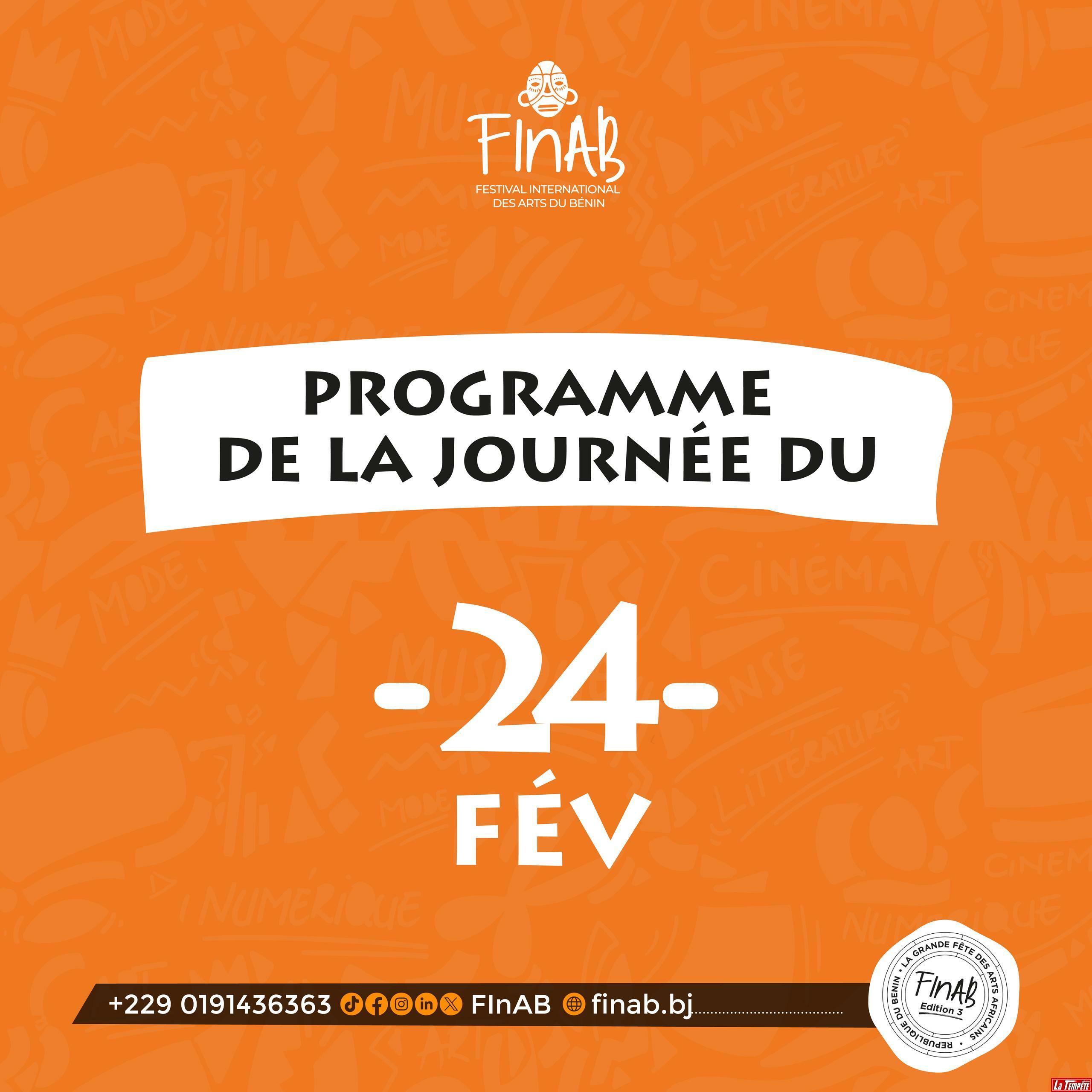 La 3è édition du FInAB suit son cours, et plusieurs activités sont inscrites au rendez-vous ce lundi 24 février 2025. (Voir affiche).