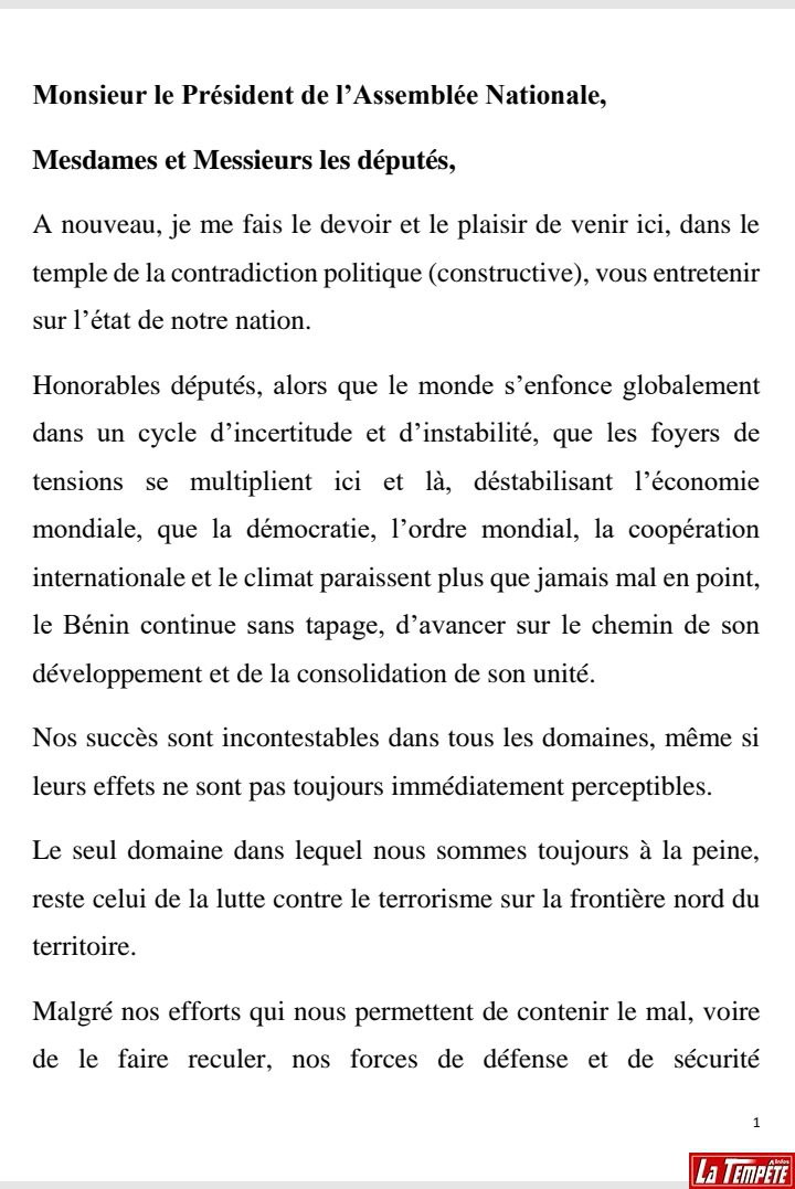 MESSAGE DE MONSIEUR PATRICE TALON,CHEF DE L’ETAT, CHEF DU GOUVERNEMENT,