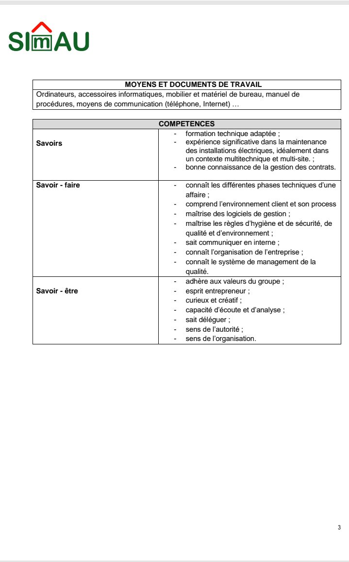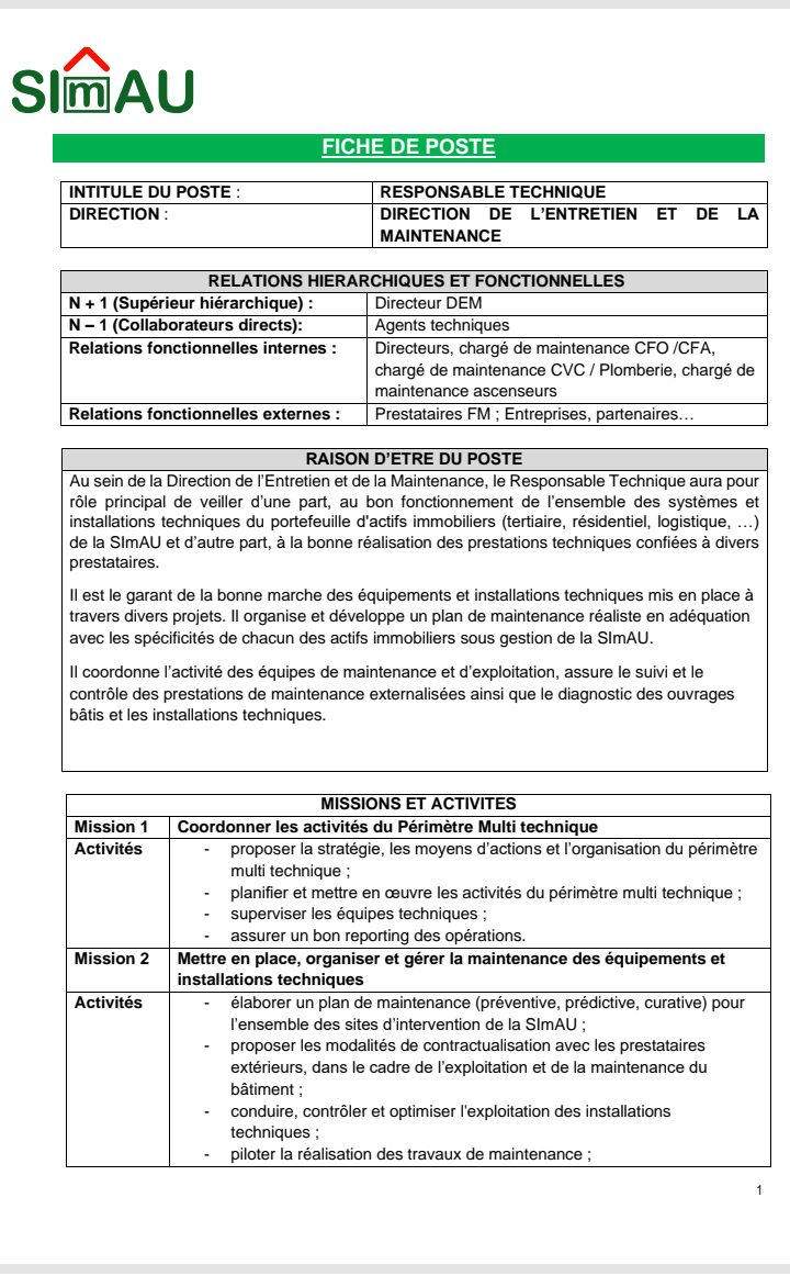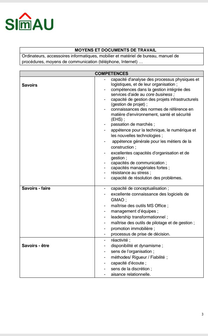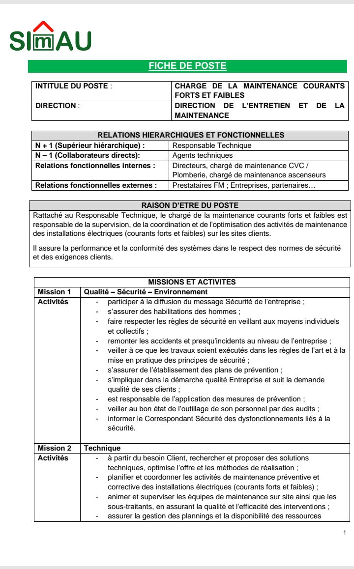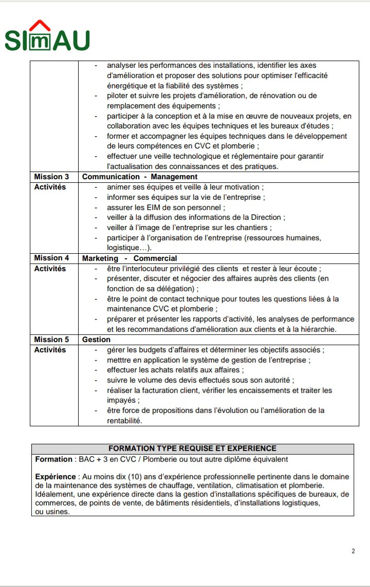 Au Bénin, la Société Immobilière et d’Aménagement Urbain (SImAU) lance un recrutement pour de nouvelles compétences au sein de sa direction générale à Cotonou. Les quatre (4) profils recherchés sont : Responsable Technique (01); Chargé de la maintenance Courants forts et faibles (01): Chargé de la maintenance VC, Plomberie et Pl (01) et Chargé de la maintenance des ascenseurs (01).
