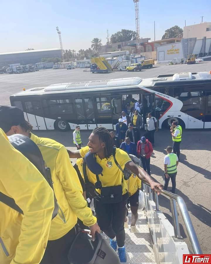 Alors qu’ils avaient quitté l’hôtel Radisson Blu de Tripoli très tôt le matin pour embarquer dans un vol spécialement affrété par le gouvernement béninois autour de 7h, c’est finalement vers 12h que les joueurs et le staff technique ont pris la direction de Cotonou. Ceci, après avoir été bloqués pendant près de cinq (05) heures d’horloge à l’aéroport de Tripoli, pour des raisons encore floues. Finalement, toute l’équipe et le staff technique des Guépards ont décollé de l’aéroport de Tripoli autour de 12h pour 4h 15mn de vol. Ils atterrissent à l’aéroport international Cardinal Bernardin Gantin de Cotonou ce mardi 19 novembre 2024 vers 16h15mn.