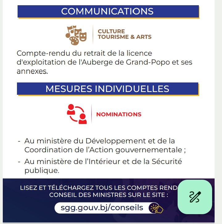 Plusieurs décisions ont été prises à l’occasion du Conseil des Ministres du mercredi 27 mars 2024, déroulé sous la présidence du Président Patrice Talon. Liste