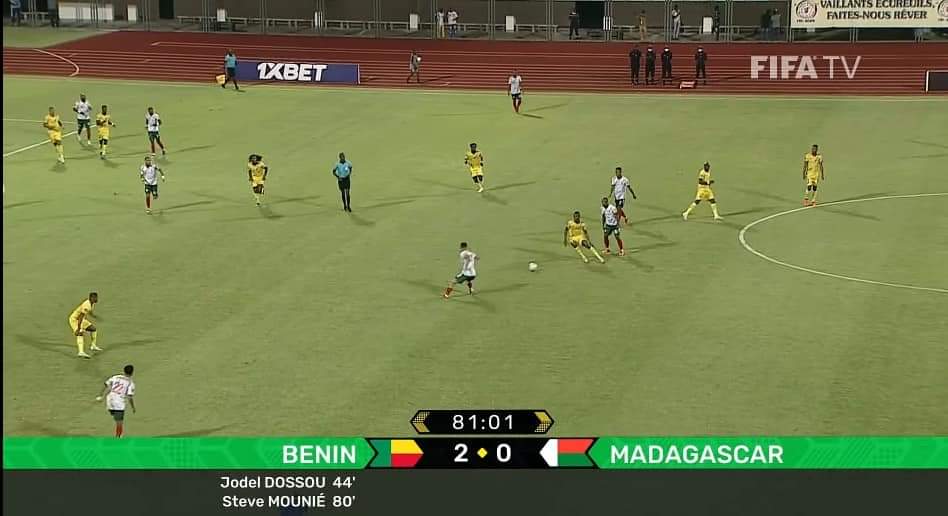 Le premier but a été une réalisation du « revenant » Jodel Dossou à la 43è minute. Et toujours sur une passe décisive du revenant (Jodel Dossou), Steve Mounié crucifie les Malgaches en marquant le 2è but à la 79è minute, malgré leur pression et impressionnant jeu face aux Écureuils du Bénin.