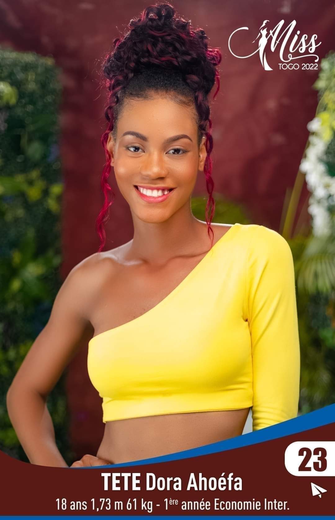TOSSOU Adjo Jacqueline Estelle, 22 ans, mesurant 1m75 pour 52 Kg et étudiante en 1ère année de Droit Privé. Ainsi se présente la nouvelle ambassadrice de beauté qui gardera la couronne de Miss Togo pendant une année.