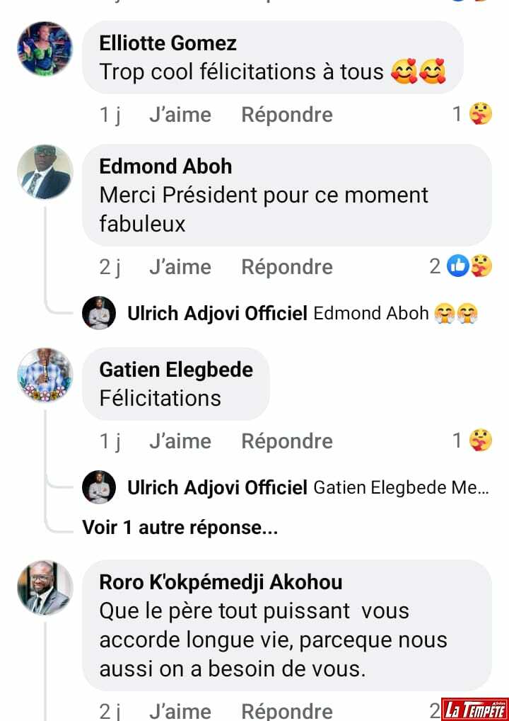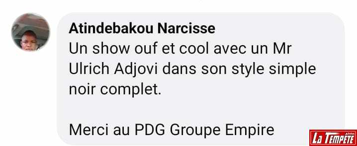 En effet, comme à ses habitudes, et particulièrement pour la circonstance, le staff du PDG Ulrich Adjovi, celui qui est surnommé le « roi du divertissement au Bénin », a mis la barre haut. Du parking moto et auto jusqu’aux astuces de divertissement, de rafraîchissement et de restauration réservés aux spectateurs, en passant par la logistique, la sécurité, aucun détail n’a été occulté. Résultats, les milliers de spectateurs qui ont fait le déplacement de Family Beach ont été plus que satisfaits, car impressionnés par ce qu’ils ont vu et vécu. En voici d’ailleurs quelques témoignages (Voir captures d’écran).