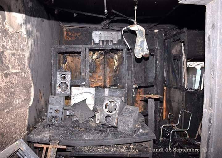 En effet, hier lundi 02 septembre 2019, aux environs de 18h 40mn, le studio d’enregistrement live et playback de la maison de productions ES LA HORA du sieur Alain Vigan a été totalement consumé. De la porte d’entrée jusqu’aux micros professionnels de la cabine, en passant par le hall où est installé l’ensemble du matériel de musique live et tout le lourd équipement d’enregistrement, tout est parti en fumée.