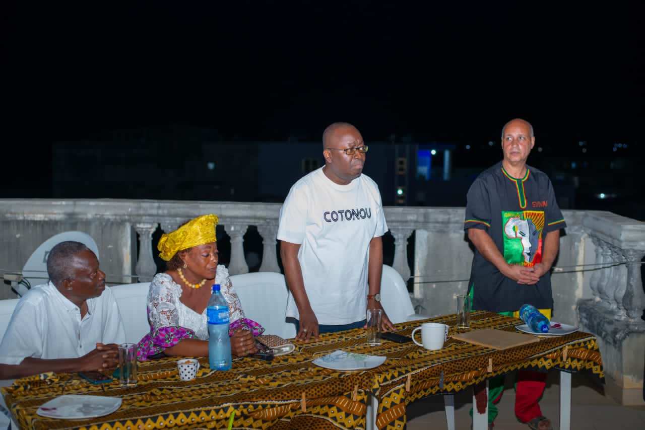 L’invité surprise de la soirée était Gatien S. Adjagboni, 2è adjoint au Maire de Cotonou. Après avoir rencontré une partie de l’association plus tôt dans la journée, sur invitation du président, il avait promis de passer voir l’ensemble du groupe avant leur départ. Il était porteur d’un message de fierté et d’espérance. Il est en effet, fier d’avoir été volontaire et d’avoir assisté des personnes défavorisées pendant ses études à Paris. « Ce que vous faites en tant que volontaires, je l’ai fait aussi et je vous encourage à continuer ainsi », a déclaré l’autorité municipale. Il a précisé qu’il avait été mis en relation avec l’association SAINJOVINAVO grâce à ses contacts en France qui connaissent son engagement sur les questions d’assistance aux personnes.