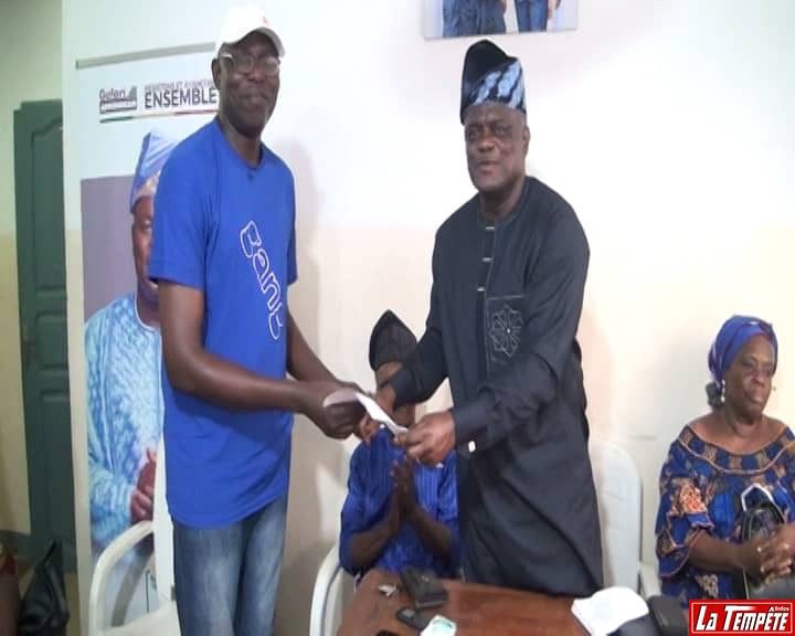 Le président du creuset, Adimi Tidjani remettant son allocution à l’He Gafari Adéchokan, devant…