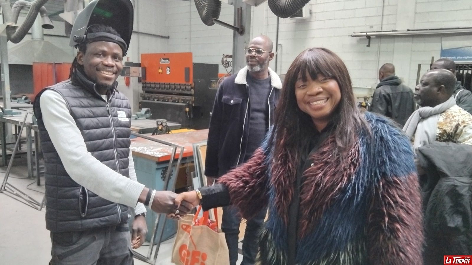 Nous sommes ensuite rejoints à l’atelier par une délégation de la chambre ivoirienne des métiers et de l’artisanat, conduite par la franco-béninoise, Généreuse Quenum, déléguée générale de l’association française Emploi Mission Action (EMA). Elle aussi est une identité remarquable : titulaire d’un double master en psychologie du travail, ingénierie et conseil en formation, elle a travaillé pendant plus de 10 ans dans deux groupements patronaux du Mouvement des entreprises de France (MEDEF). A travers plusieurs missions d’accompagnement des entreprises dans divers domaines, elle a su développer ses compétences à l’international, notamment en Côte d’Ivoire.